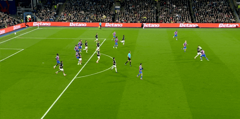 Đội hình xuất phát của Crystal Palace: 1-Henderson, 6-Guey, 5-Lacroix, 26-Richards, 19-Hughes (65'20-Wharton), 8-Lerma, 7-Sar (65'18-Kamada Daichi), 2-Munoz (86’17 -Klein), 3-Mitchell, 10-Pino (73'55-Devenney), 14-Matteta (86'12-Uche)