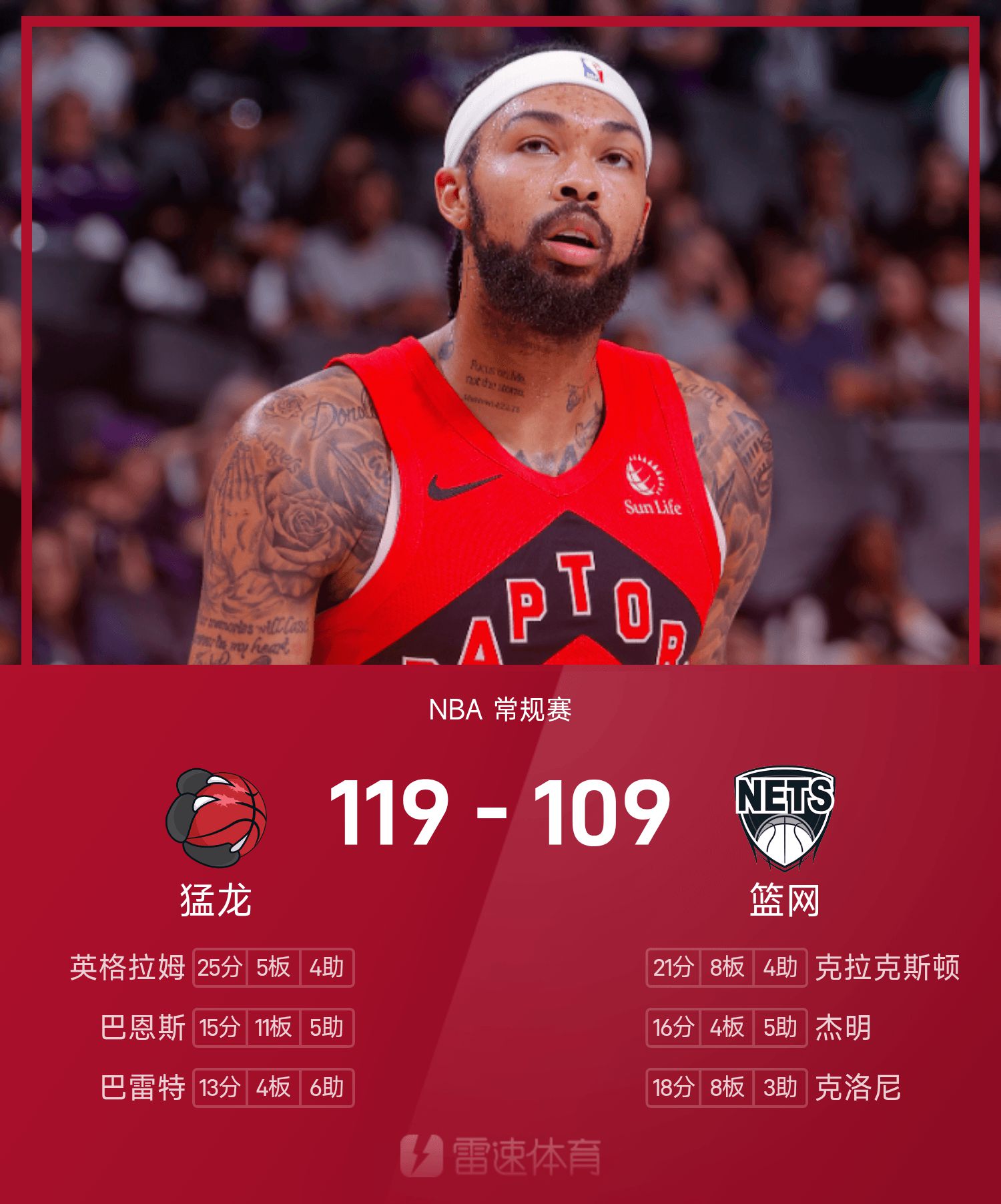 Cuối trận, Nets thua Raptors với tỷ số 109-119.
