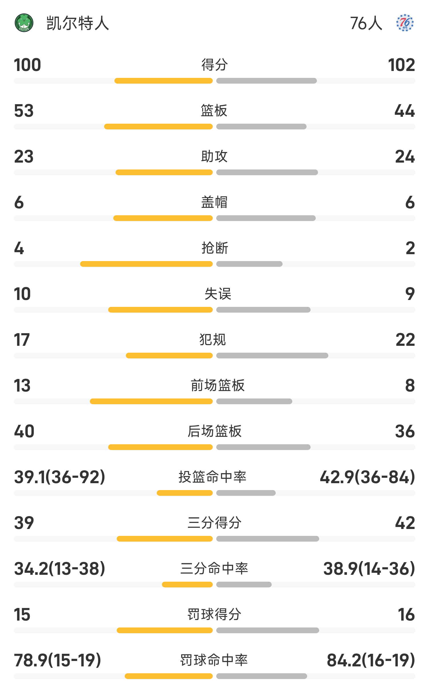 Cuối trận, 76ers đã đánh bại Celtics với tỷ số 102-100.